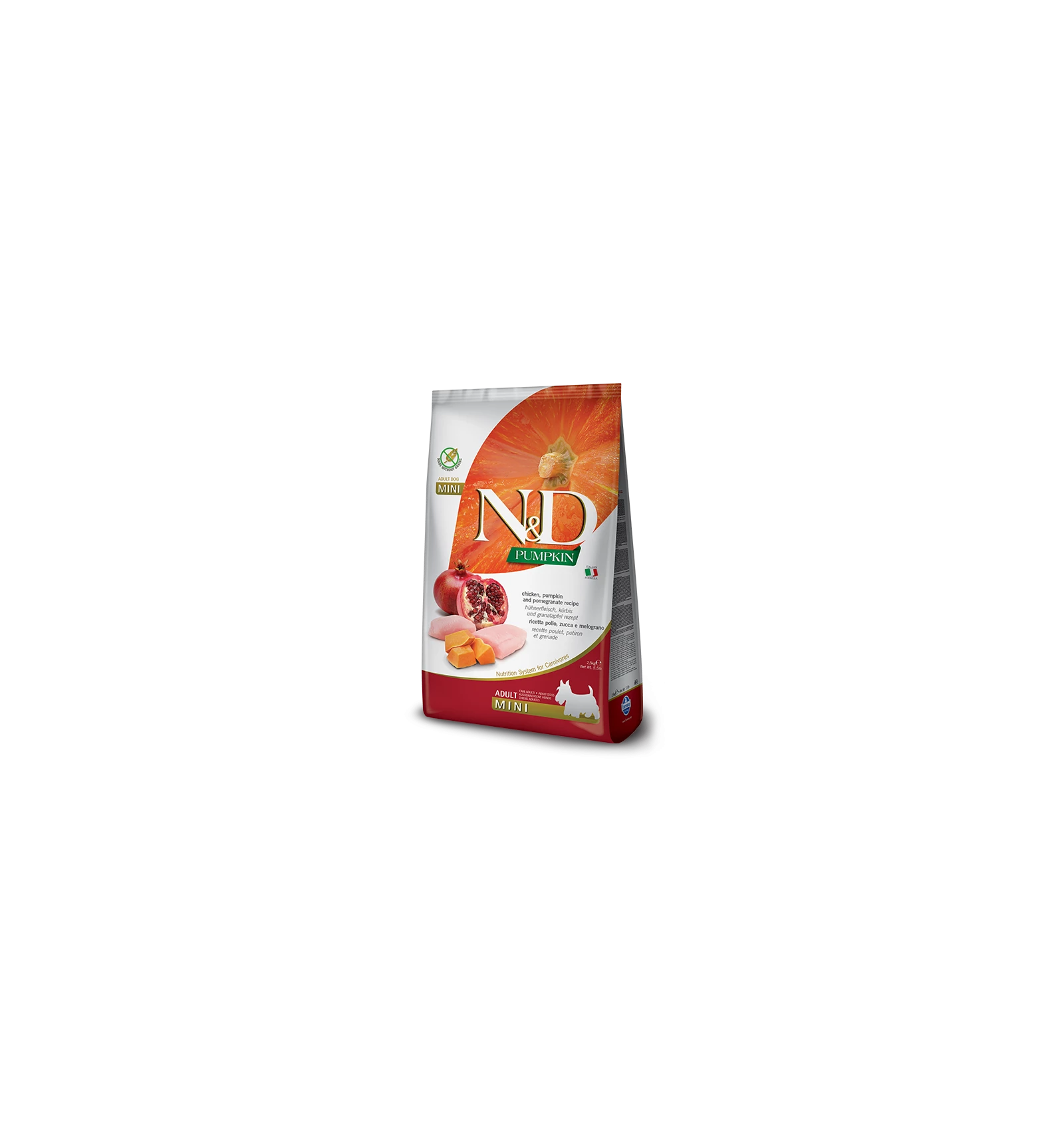 Composition: Poulet désossé (24%), protéine de poulet déshydratée (22%), amidon de pois, graisse de poulet, potiron séché (5%), œuf séché, hareng, protéine de hareng déshydratée, huile de poisson (hareng), fibre de pois, carotte séchée, farine de luzerne, inuline, fructo-oligosaccharide, extrait de levure (source de manno-oligosaccharide), grenade séchée (0.5%), pomme séchée, épinard séché, cosse et graine de psyllium (0.3%), orange douce séchée, myrtille séchée, chlorure de sodium, levure de bière séchée, curcuma (0.2%), extrait d’aloe vera, glucosamine, sulfate de chondroïtine.