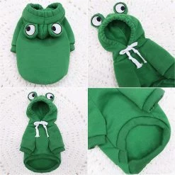 1.Pet frog sweater-This dog clothes design a frog shape on the head, let your dog/cats look more cutely after wearing it, and soft material provides warmth to your pet in the winter or a low-temperature room in summer