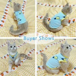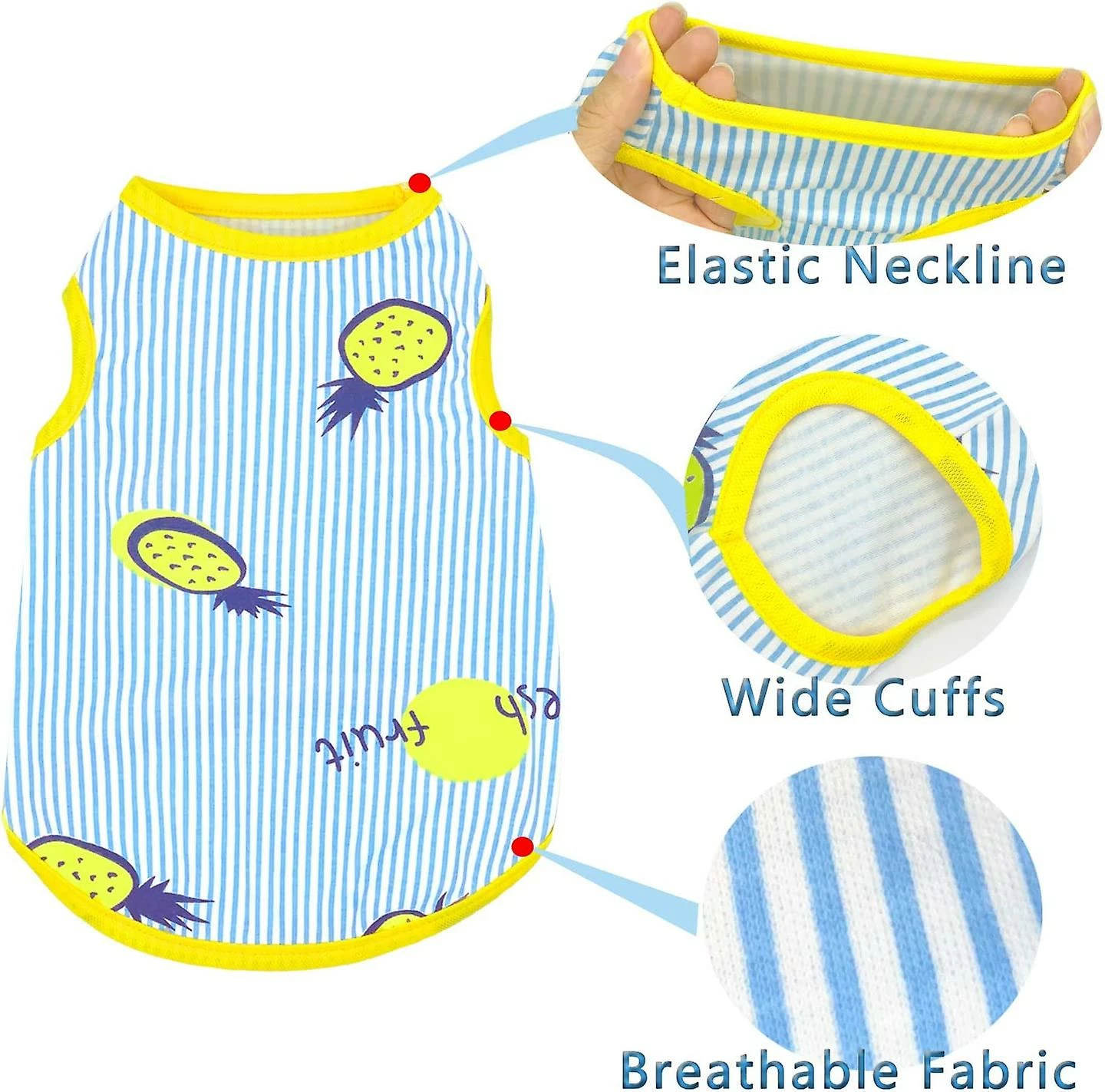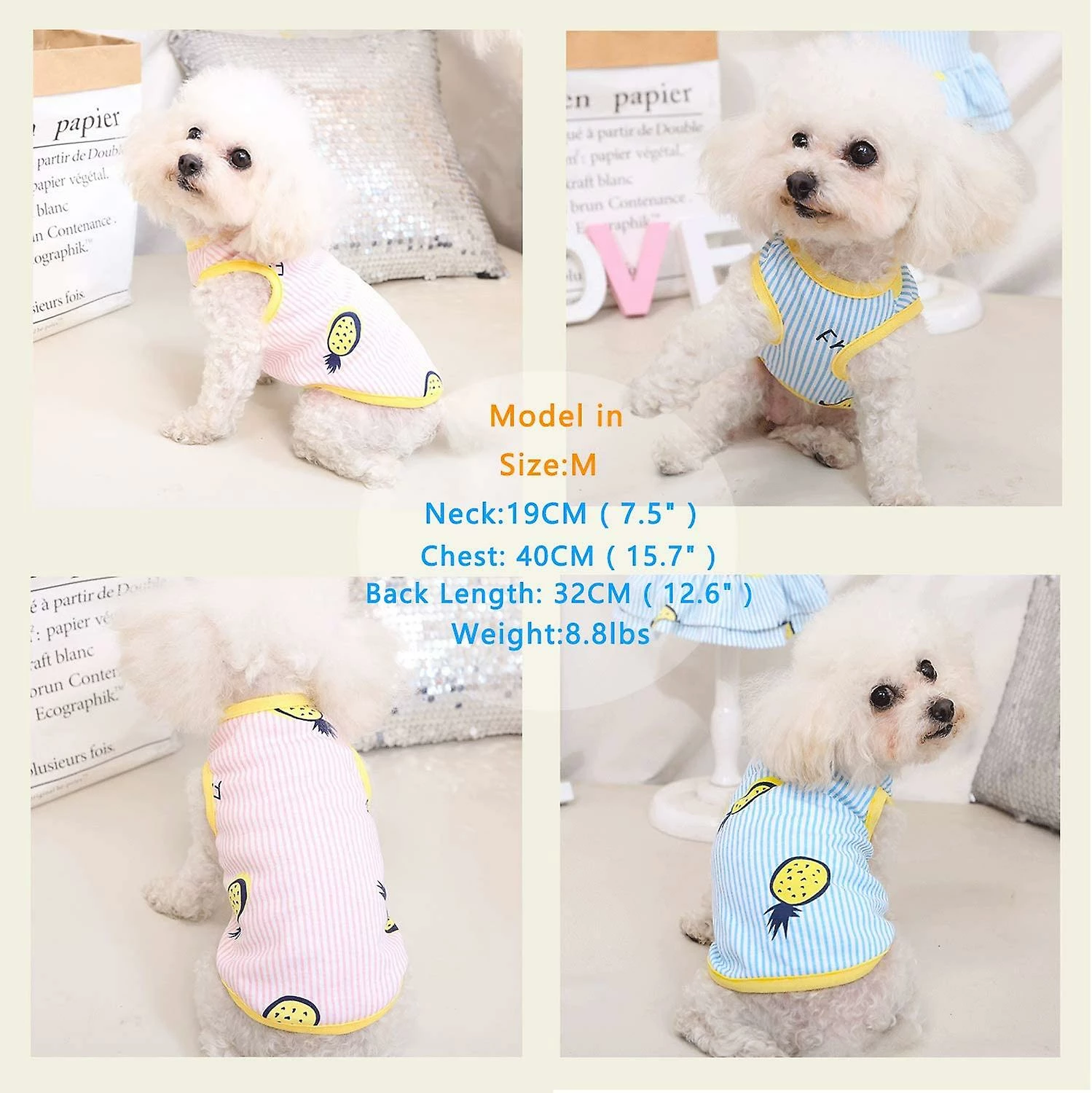 Striped Printed Clothes There are two styles for your choose: 2 piece/set tether pleated dresses with 2-tier ruffle hem pleated style; 2 piece/set sleeveless vest shirts style, These dog clothes with striped & letter & pineapple graphic printed design. Providing your dogs with adorable and charming appearance when wearing.^