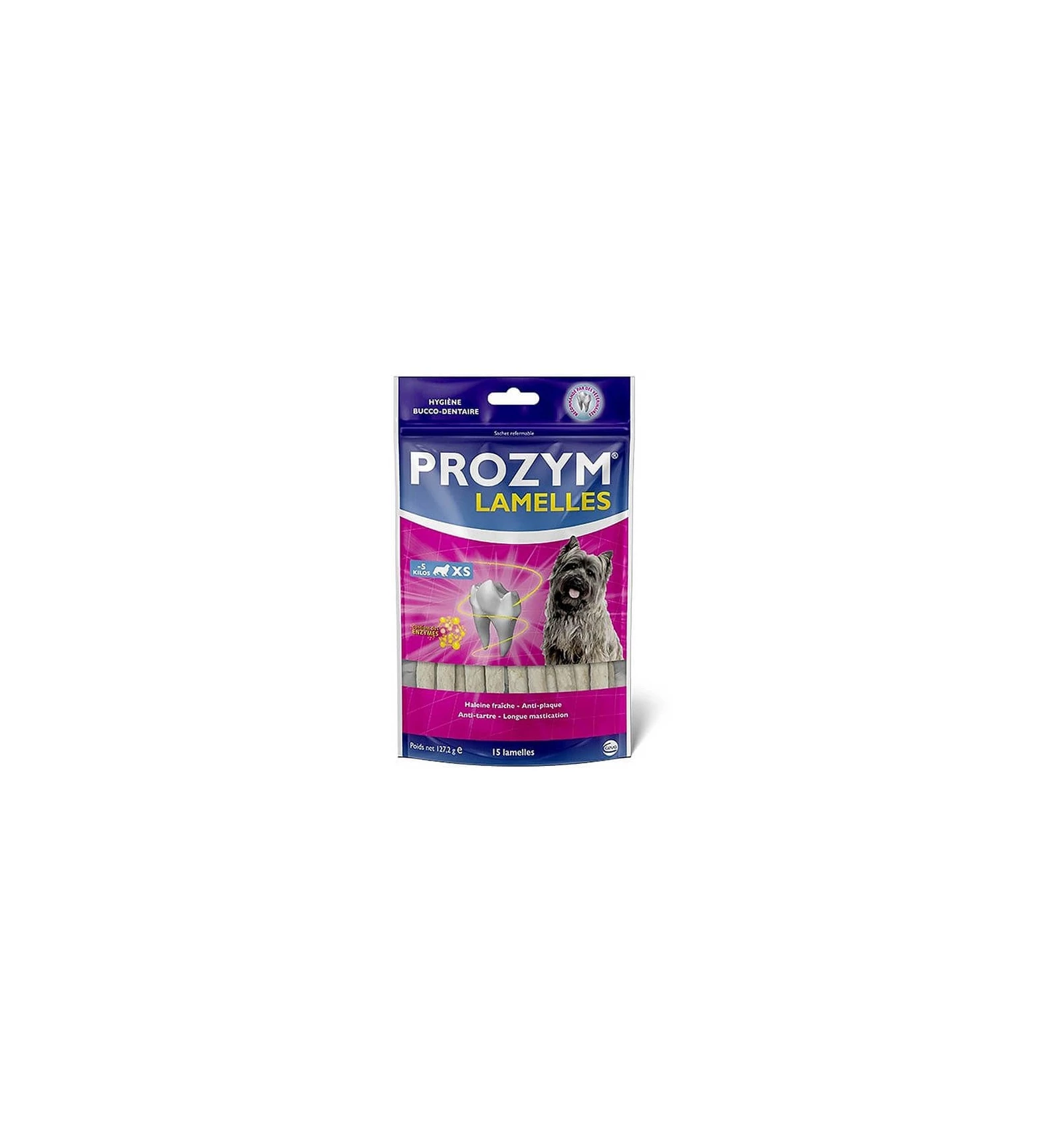 - Découvrez les lamelles Prozym pour votre chien. Elles vont contribuer à nettoyer sa dentition et à prévenir tous les risques bucco-dentaires. Ces friandises pour chiens sont très fines et agréables pour la mastication de votre chien.