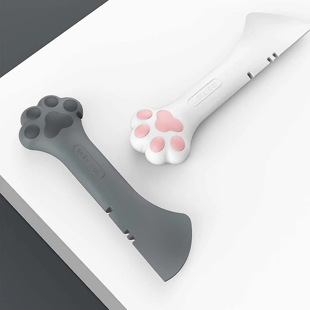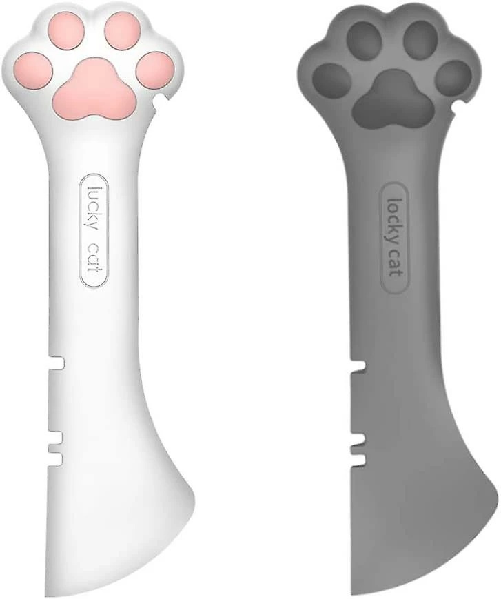 ^3.2 Cat food can opener designed for canned cats, canned dogs and all pet cans.^4.Easy to clean and care , you could use water to wash .^5.Package included : 2 pack can spoons in different colors (White Pink and Gray Black)