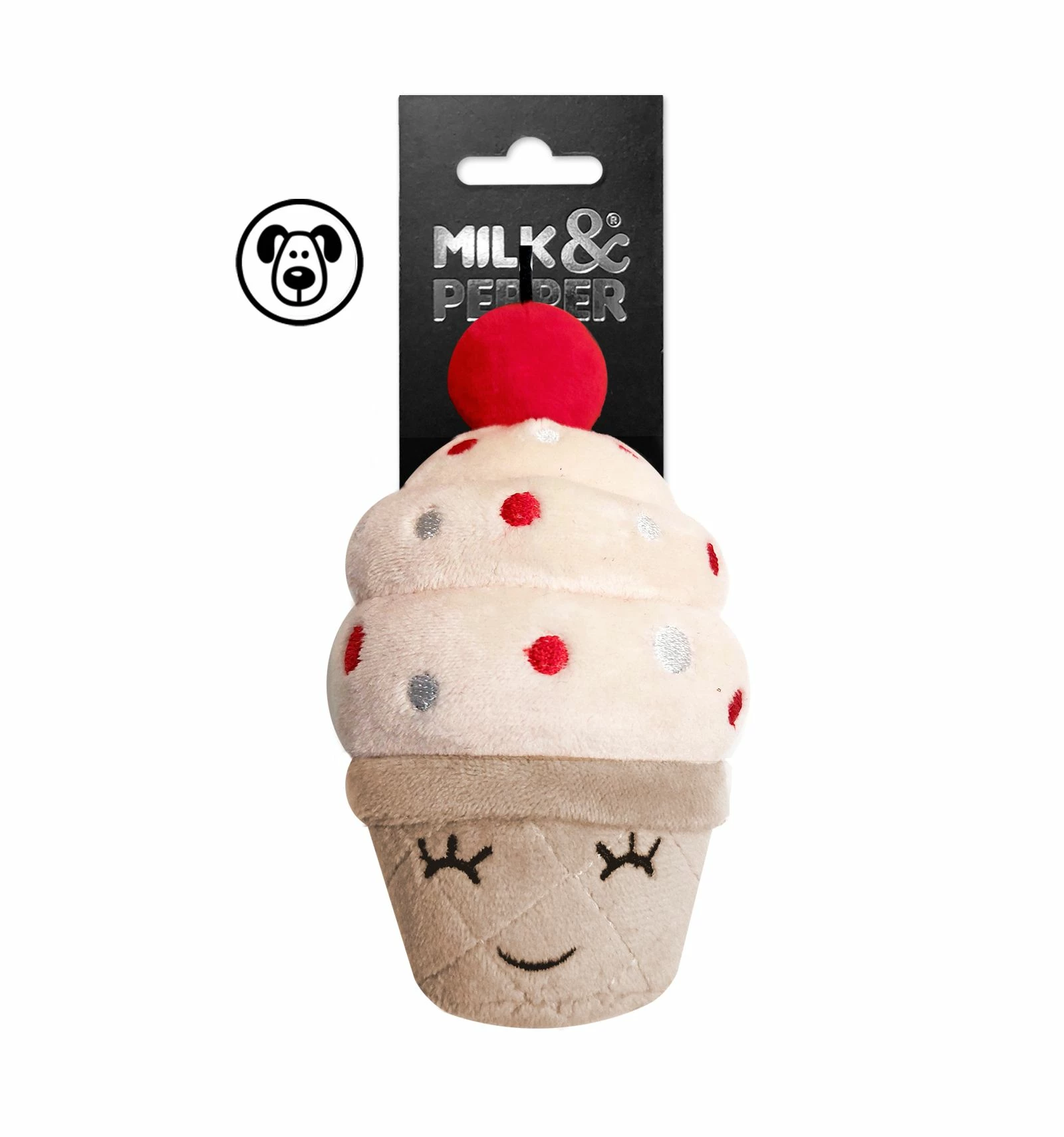 Son design unique et original en forme de sorbet fera saliver votre chien lors de ses séances de jeu les plus animées ! Pour un plaisir de jeu prolongé, ce jouet rafraichissant contient un couineur pour stimuler votre toutou !