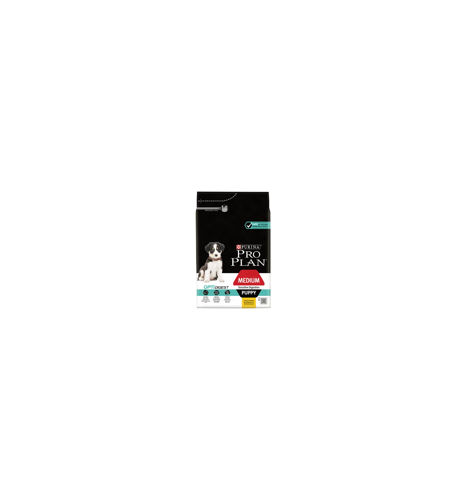 Les croquettes Purina Pro Plan Medium Puppy Sensitive Digestion au poulet sont élaborées pour les chiots de races moyennes ayant des troubles digestifs