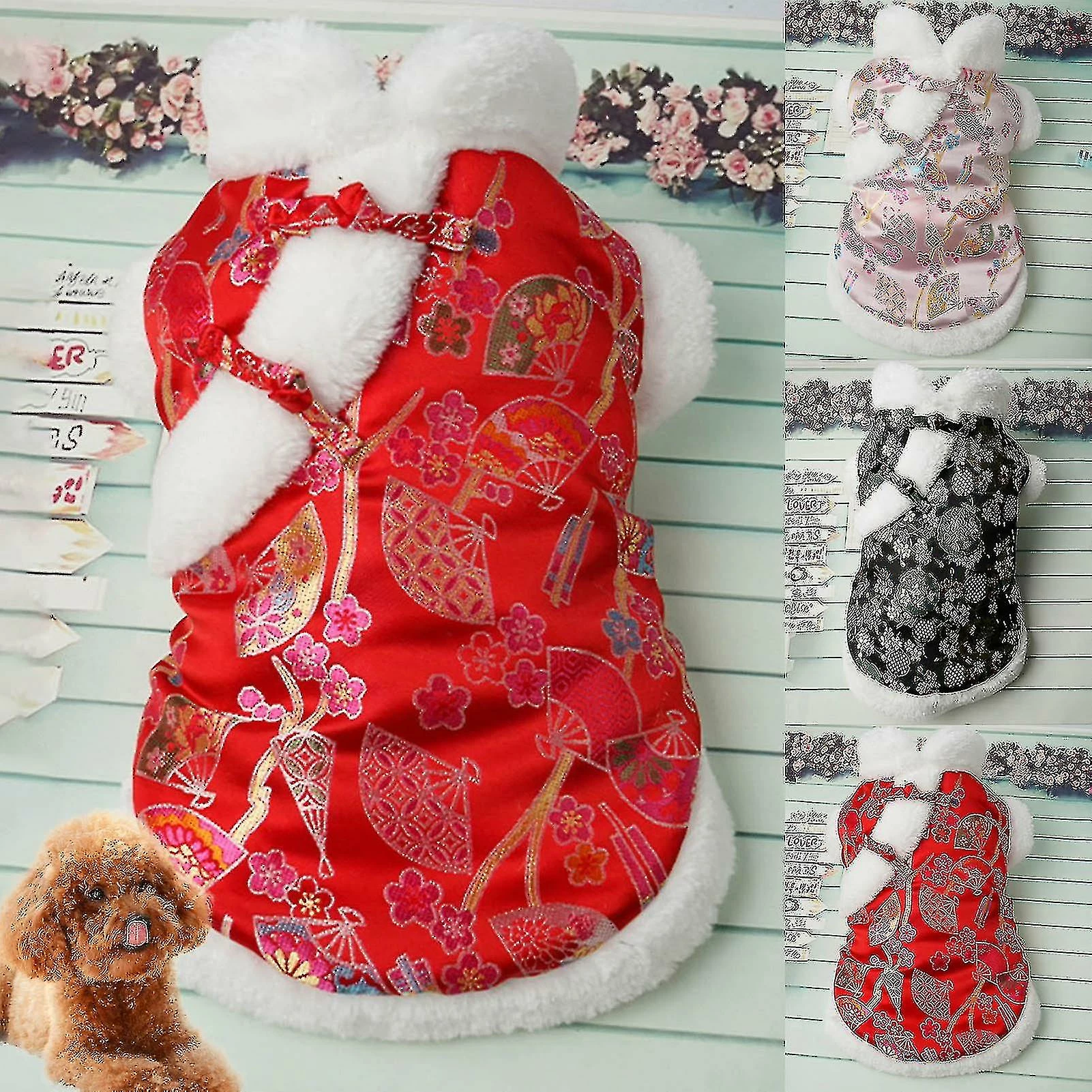 First, your pets can wear and take off the pet clothes easily owing to the zipper closure. Characterized by sleeveless and high collar design, this pet coat is super soft, mild to skin and comfortable for your pet to wear.With the characteristic of vintage Chinese style and exquisite pattern, the pet coat is adorable and makes your pet more cute and fashionable as well as brings a festive ambience to your home.The pet coat is made of premium cotton.There are 5 sizes of the product to choose from: S, M, L, XL, 2XL.It is suitable for pets such as dogs, teddy to wear in New Year.Item Name: Pet CoatMaterial: CottonStyle: CasualGender: UnisexSeason: Autumn, WinterClosure Type: Button ClosureNeck Type: High CollarSuitable for: DogsFeatures: Fashionable, Adorable, WarmSize Details: Size: S, Bust: 37cm/14.6″, Back Length: 25cm/9.8″, Suggested Weight: 1.5kg-2.5kg (Approx.)Size: M, Bust: 42cm/16.5″, Back Length: 30cm/11.8″, Suggested Weight: 2.5kg-4kg (Approx.)Size: L, Bust: 47cm/18.5″, Back Length: 35cm/13.8″, Suggested Weight: 4kg-5.5kg (Approx.)Size: XL, Bust: 52cm/20.5″, Back Length: 38cm/15″, Suggested Weight: 5.5kg-7.5kg (Approx.)Size: 2XL, Bust: 57cm/22.4″, Back Length: 42cm/16.5″, Suggested Weight: 7.5kg-10kg (Approx.)Notes:Please refer to our size chart and choose the right size.Due to the light and screen setting difference, the item »s color may be slightly different from the pictures.Package Includes:1 x Pet Coat
