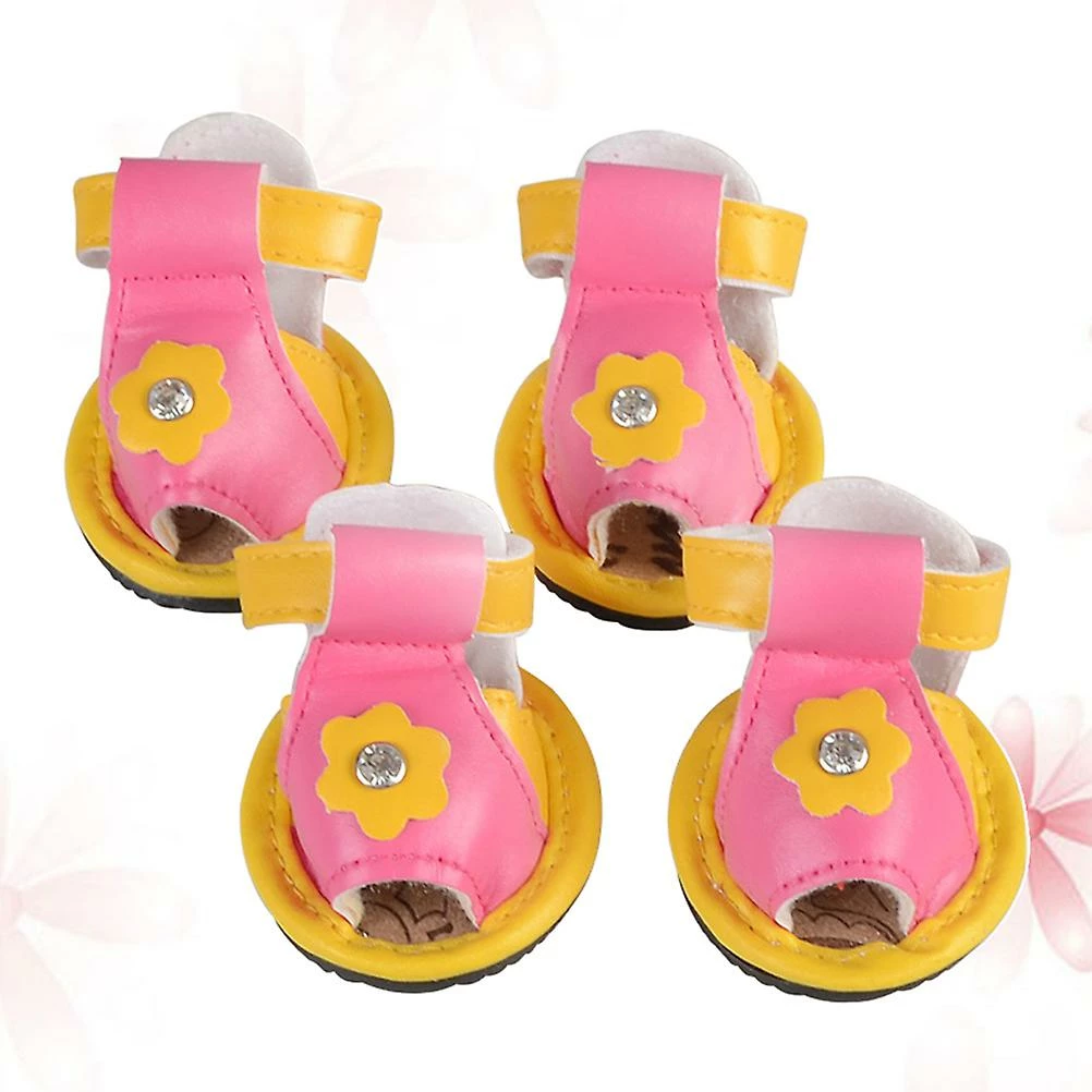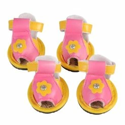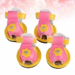 Description_x000D__x000D_This is a set of 4 pieces pet dog shoes. The flexible sole makes the dog more comfortable, with 5 sizes to choose from. Dog shoes for summer, protect your pet avoid burned when walking on hot pavement,deck and beach._x000D__x000D_Feature_x000D__x000D_- Color: Yellow._x000D_- Material: PU._x000D_- Size 1: width 3.2CM, length 4.3CM._x000D_- Size 2: width 3.6CM, length 4.5CM._x000D_- Size 3: width 4.3CM, length 5.4CM._x000D_- Size 4: width 4.6CM, length 5.9CM._x000D_- Size 5: width 5.0CM, length 6.2CM._x000D_- The flexible sole makes the dog more comfortable, with 5 sizes to choose from._x000D_- Dog shoes for summer, protect your pet avoid burned when walking on hot pavement,deck and beach._x000D_- Floral design makes your pet more lovely._x000D_- A good gift for your pet._x000D_- Warm Tip: Dear buyer, due to lighting effect, monitor&