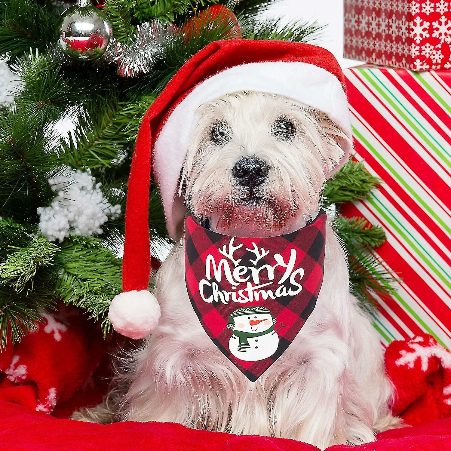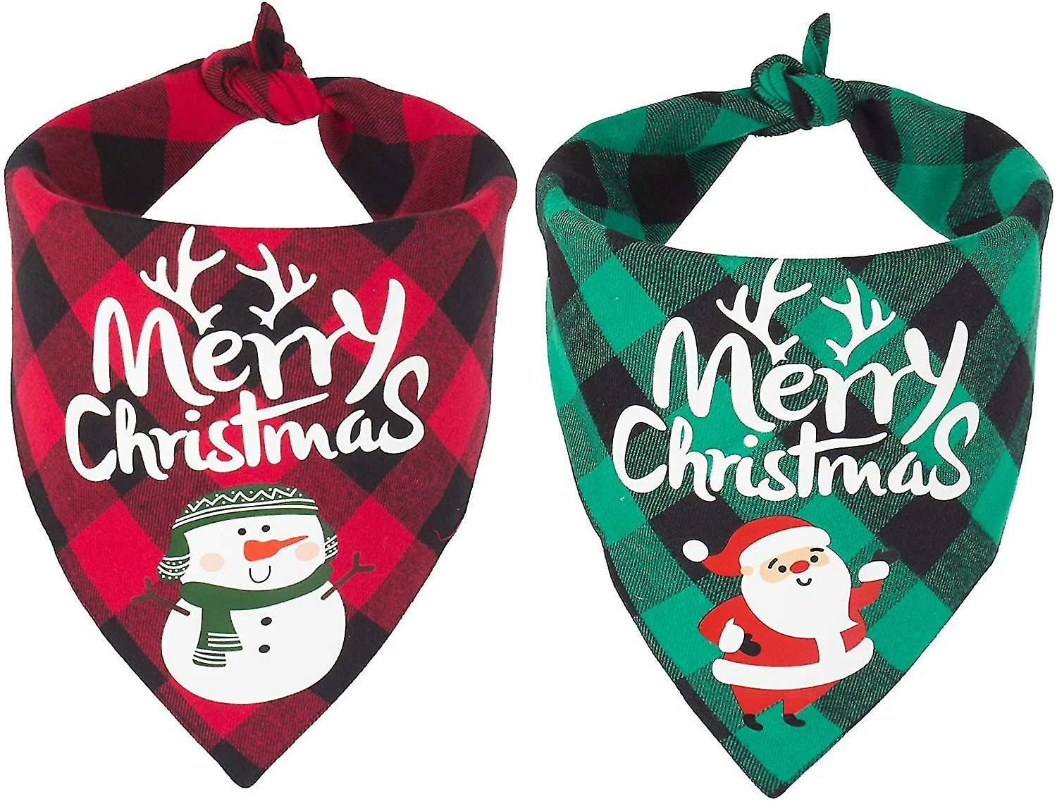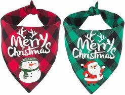 Package: 2 x bandana de NoĂ«l pour chien, lâun est Ă carreaux rouges Joyeux NoĂ«l Motif de bonhomme de neige bandana, lâautre est Ă carreaux vert Joyeux NoĂ«l motif de NoĂ«l bandana, un cadeau cool pour faire votre mode de chien Ă noĂ«l.