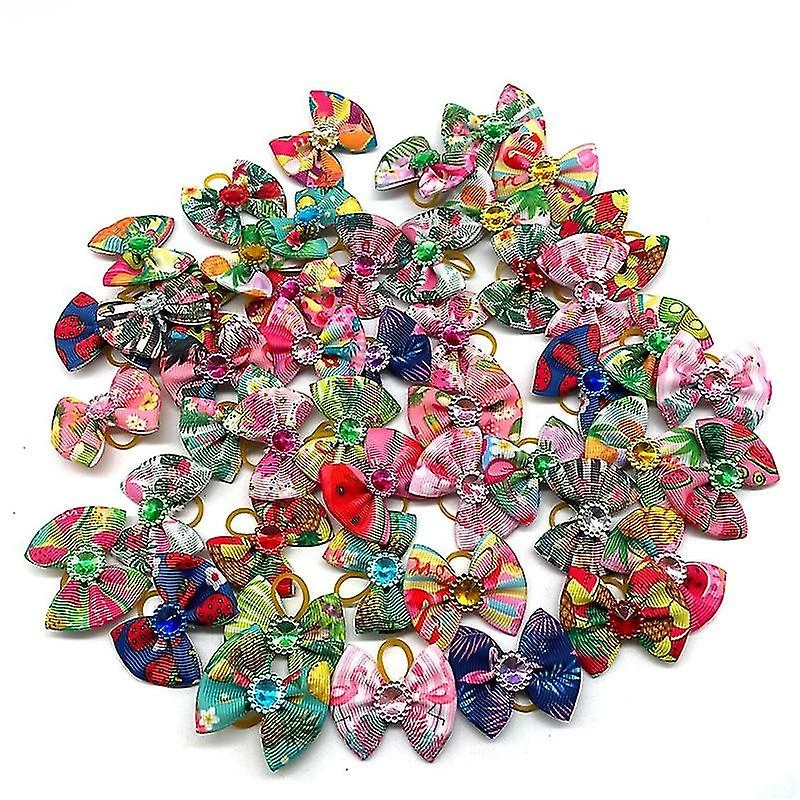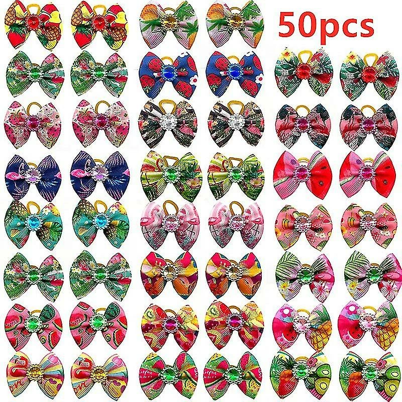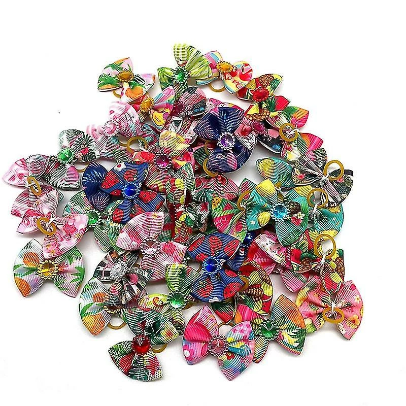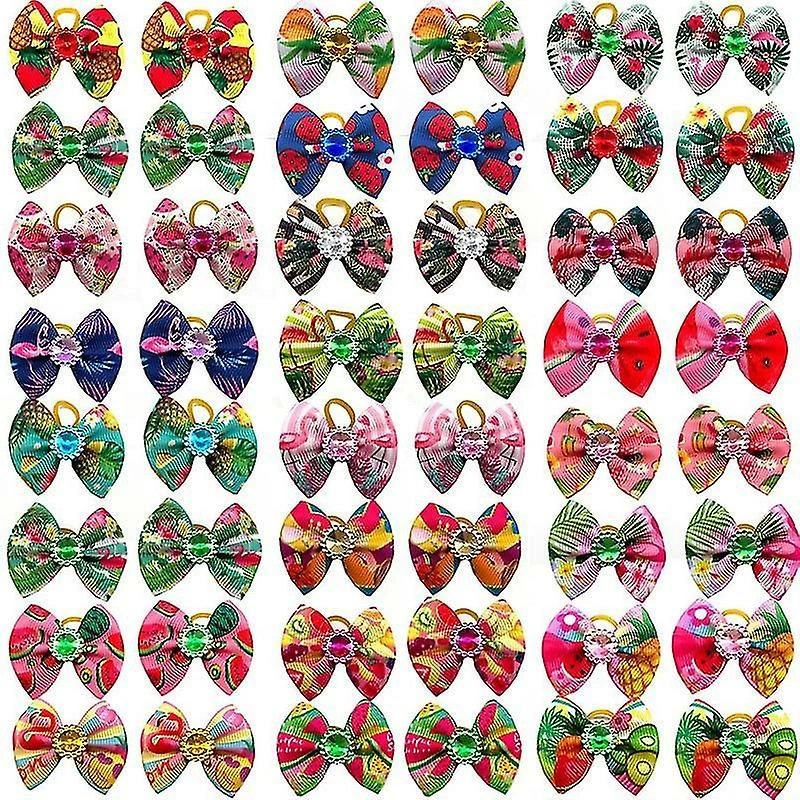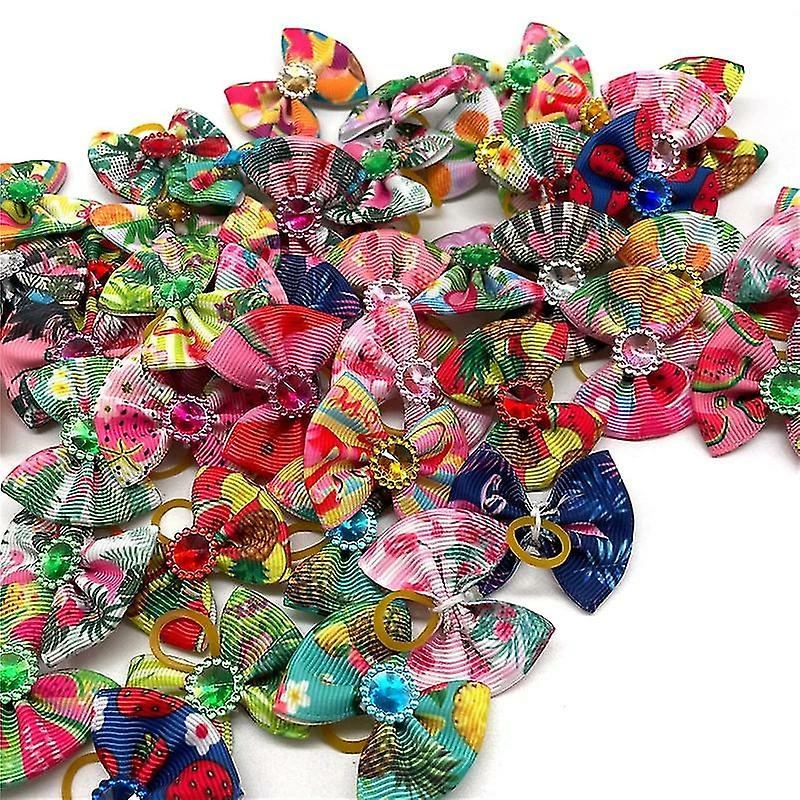 50/100pcs Pet Dog Bows Summer Fruit Pattern Dog Supplies Rubber Bands Cat Dog Hair Bows Yorkshire Dog Grooming Bows Pet Supplies