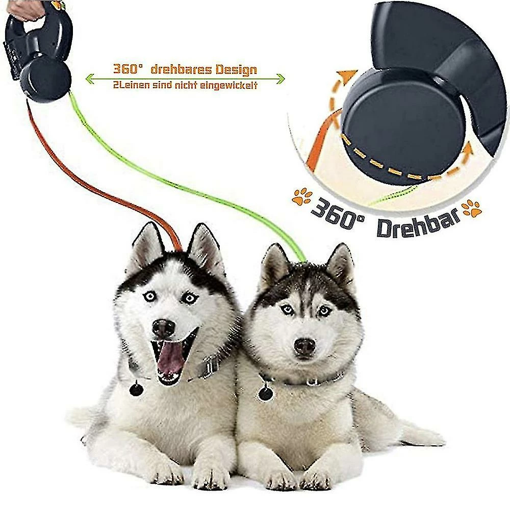 Dual Pet Puppy Retractable Leash Rope Zero Tangle For Two Dogs Walk