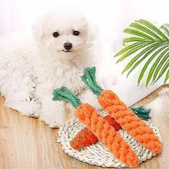 2.Clean TeethThe natural cotton rope toy is tightly woven with cotton rope for chewing and playing, can help clean dogs teeth, lower the danger 3.Suitable for Small and Medium PetsSafe and washable material, the carrot chew toy is perfect size and bright colors. Vivid rope toy will attract your pets attention. Washable and reusable.