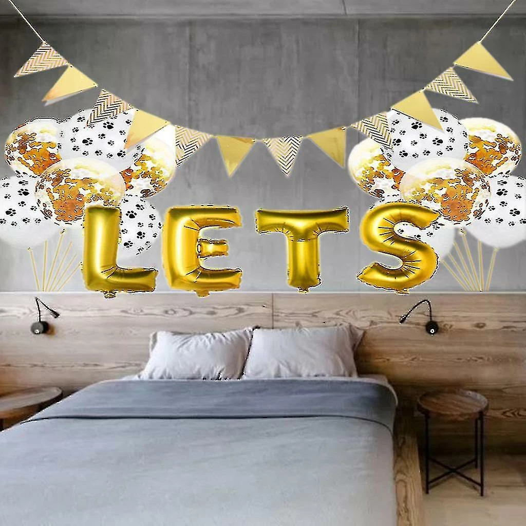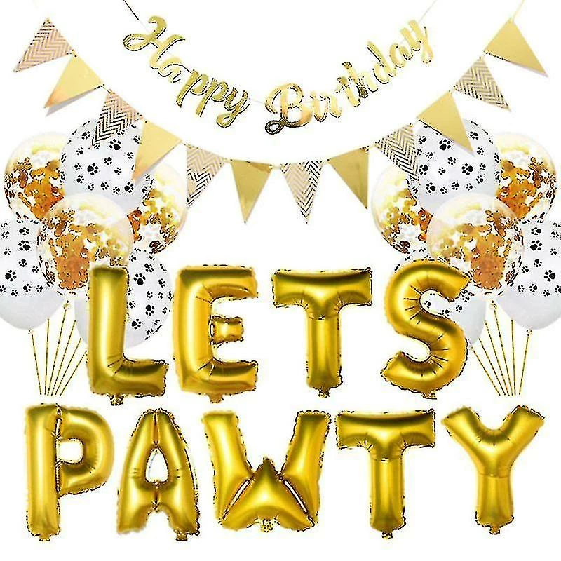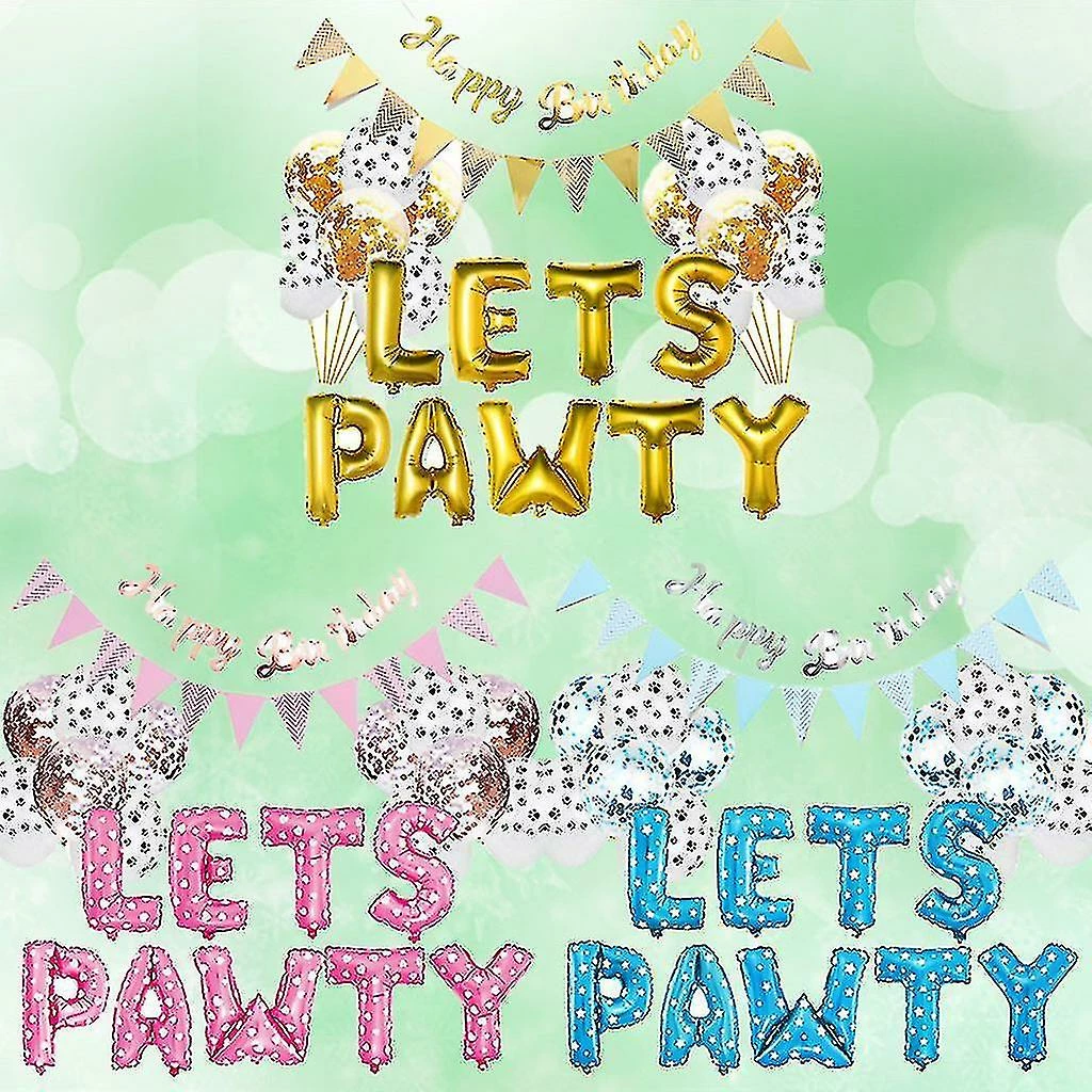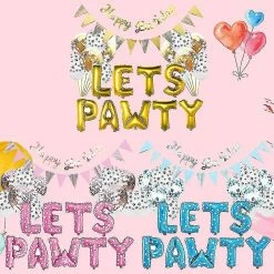 Pet Dog Birthday LETS PAWTY Letter Balloon Decoration Set Girl Boy Celebration Atmosphere Party Supplies Description:100% brand new and high quality Features:The paper is thick, with bright colors and clear patterns.Let this birthday be the most unforgettable moment in your dog’s life.Adorable dog birthday party decorations, makes your dog a lovely prince. It is suitable for all kinds of scenes to be used for decorating all kinds of foods, and is more suitable for accessories for wine and pattern drink lovers DIY. Specification:Type: Pet Birthday BalloonMaterial: Latex + Aluminum filmApplications: Pet Birthday Party DecorationFeatures: Pet Birthday Balloon, Birthday Party Supplies, Celebration Atmosphere DecorationPackage size: app.28x18cm/11.02×7.09inColor: Yellow, Pink, Blue (optional)Quantity: 1 Set Note:1.Please allow 0-1cm error due to manual measurement. pls make sure you do not mind before you bid.2.Due to the difference between different monitors, the picture may not reflect the actual color of the item. Thank you Package includes:1 Set x Siamese birthday pull flower1 Set x pennant6 Pcs x sequin balloons (12 inches)6 Pcs x Dog footprint balloon (12 inch)1 Set x LETS PAWTY Letter Balloon