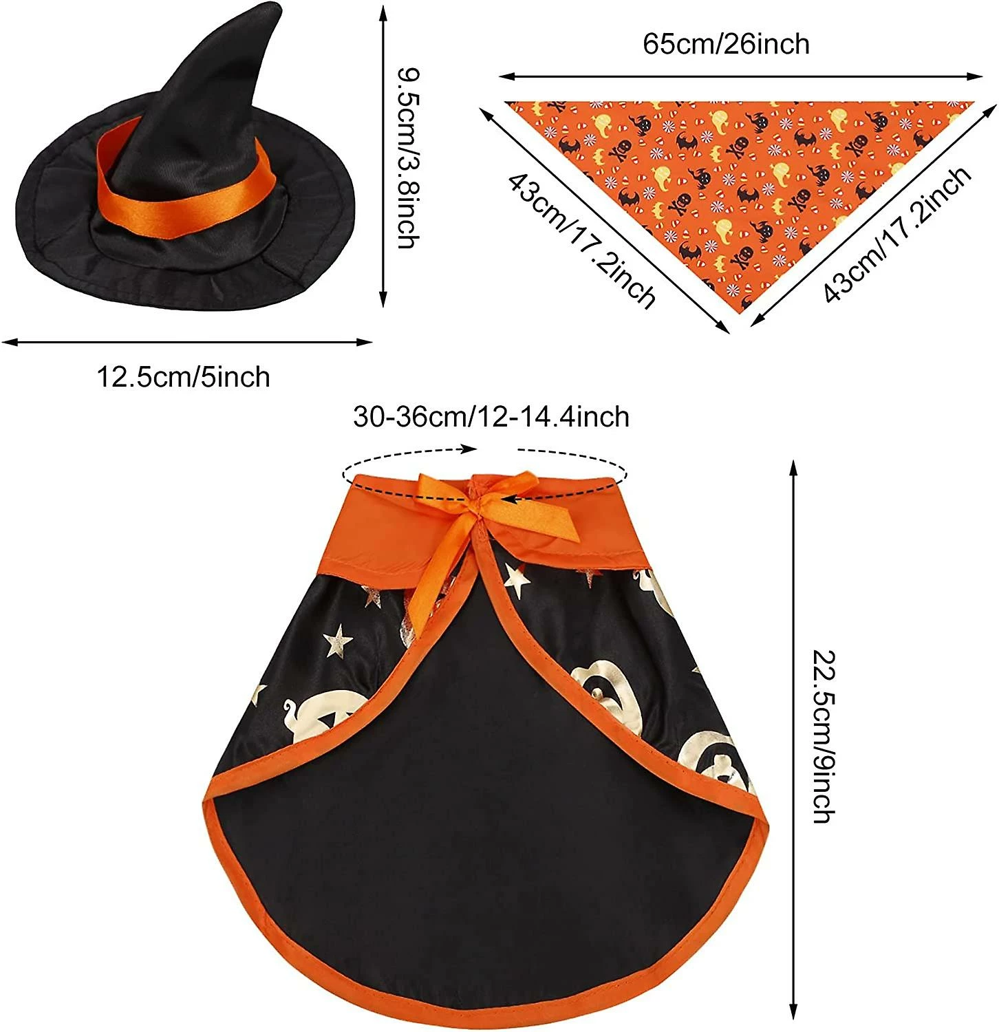 ?Eye-Catching Design: Our whole set of pet costumes seen black as the background and the golden prints of Halloween elements, for example, wizards and pumpkins. Making your pet look like a little witch / wizard full of mystery