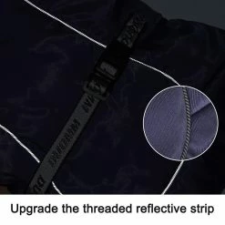 3. The reflective strip on the dog’s snowcoat provides high visibility in the dark to ensure your dog’s safety. The dog suit is also designed with hidden belt holes for controlling your dog. When necessary, the furry collar can stand up and put down.